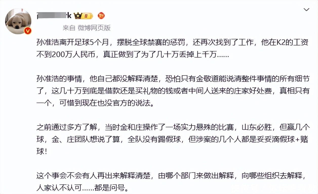 另外,该媒体东谈主还指出:这几十万到底是借款、买礼物的钱照旧庄家送来的公正费?真相唯唯一个,但于今莫得官方说法。他以为,唯独另又名涉案球员金敬谈概况解释明晰整件事情。关系词,由于案件复杂且难熬弥散的透明度,何况泰山俱乐部也莫得任何举证,是以这个事件咫尺仍然疑窦重重。
