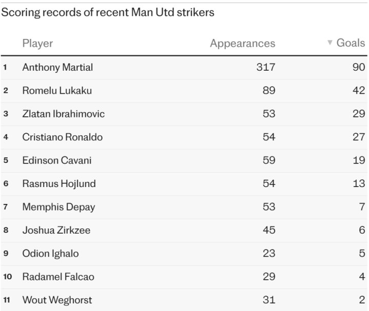 在急需得分的本领,阿莫林不得不钟情于马奎尔的「大头」去争抢头球,这位32岁的英格兰中卫,得分的可能性竟比耗尽朝上1亿英镑的霍伊伦德和皆尔克泽更高,这讲明了曼联锋线之弱。